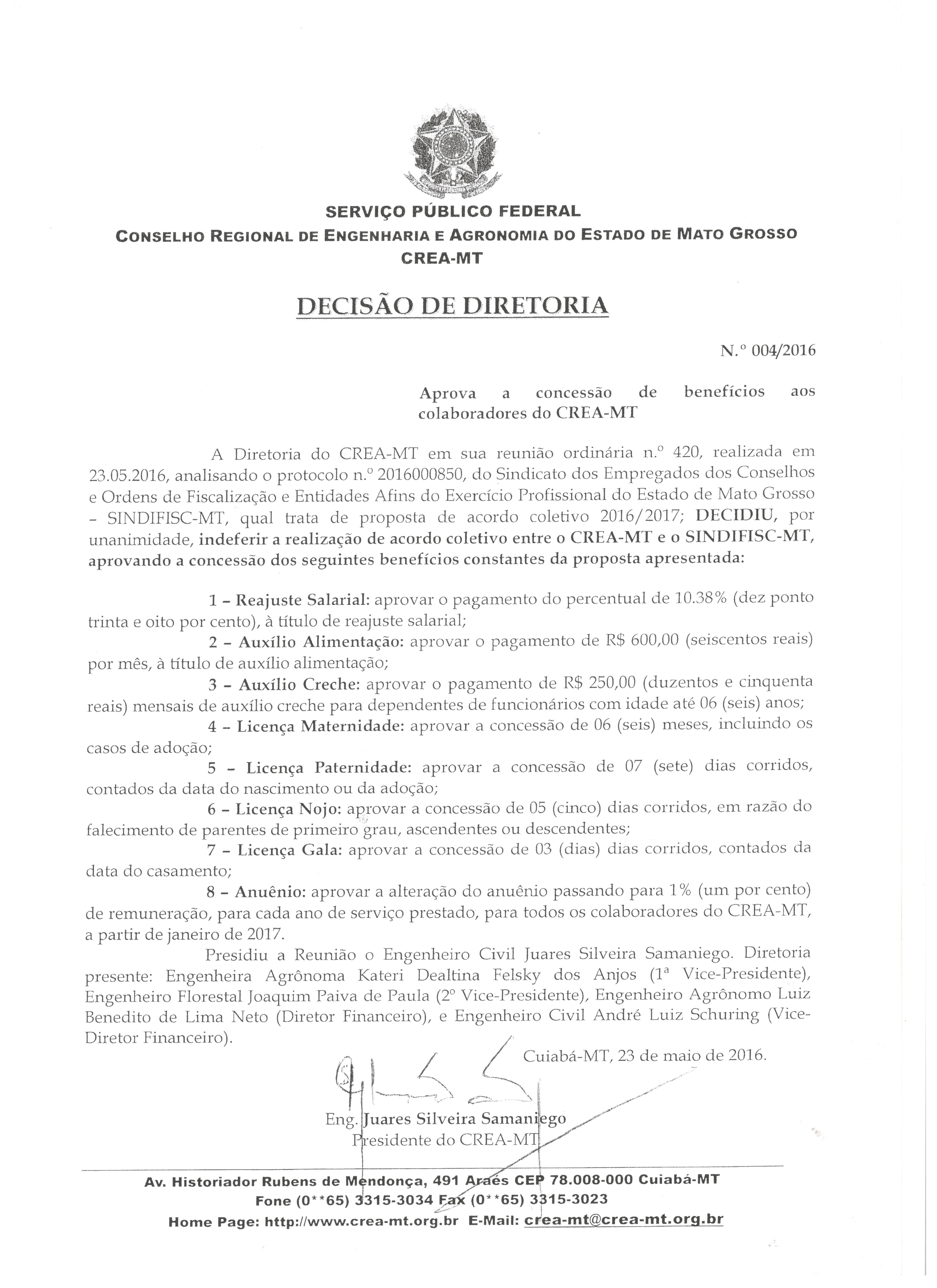 DECISÃO DA DIRETORIA ACORDO COLETIVO 2016