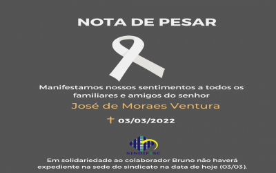 leia maisO SINDIFISC-MT lamenta o falecimento do aposentado, José de Moraes Ventura, 86 anos, avô do colaborador, Bruno Cesar Lemes da Silva