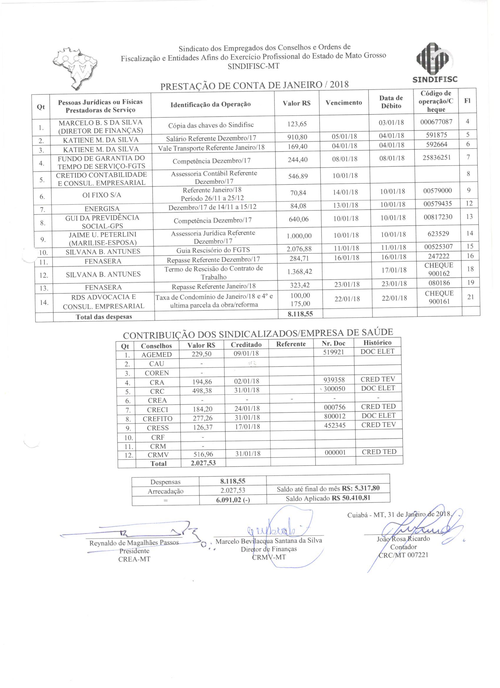 PRESTAÇÃO DE CONTAS- JANEIRO DE 2018- 1/2