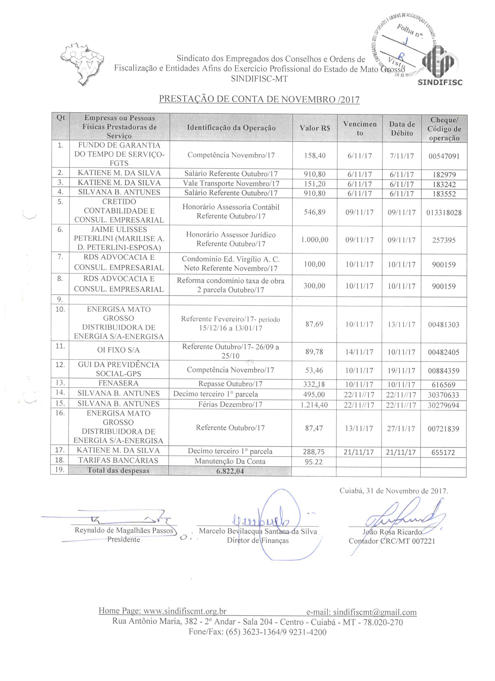 PRESTAÇÃO DE CONTAS- NOVEMBRO DE 2017- 1/4