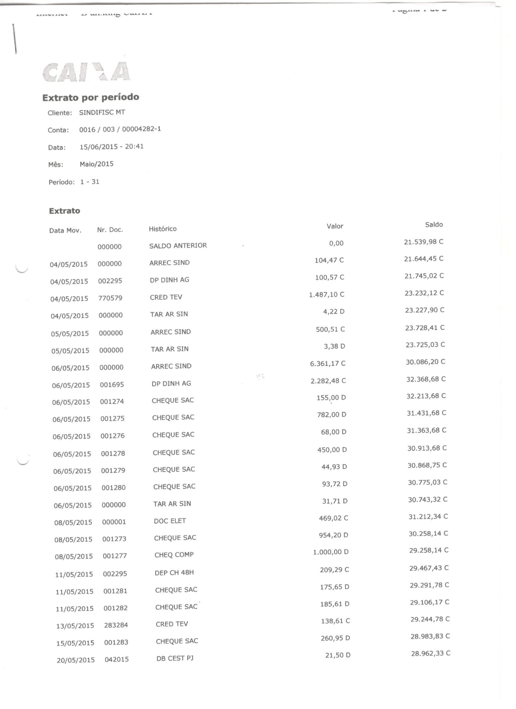 EXTRATO MAIO 2015