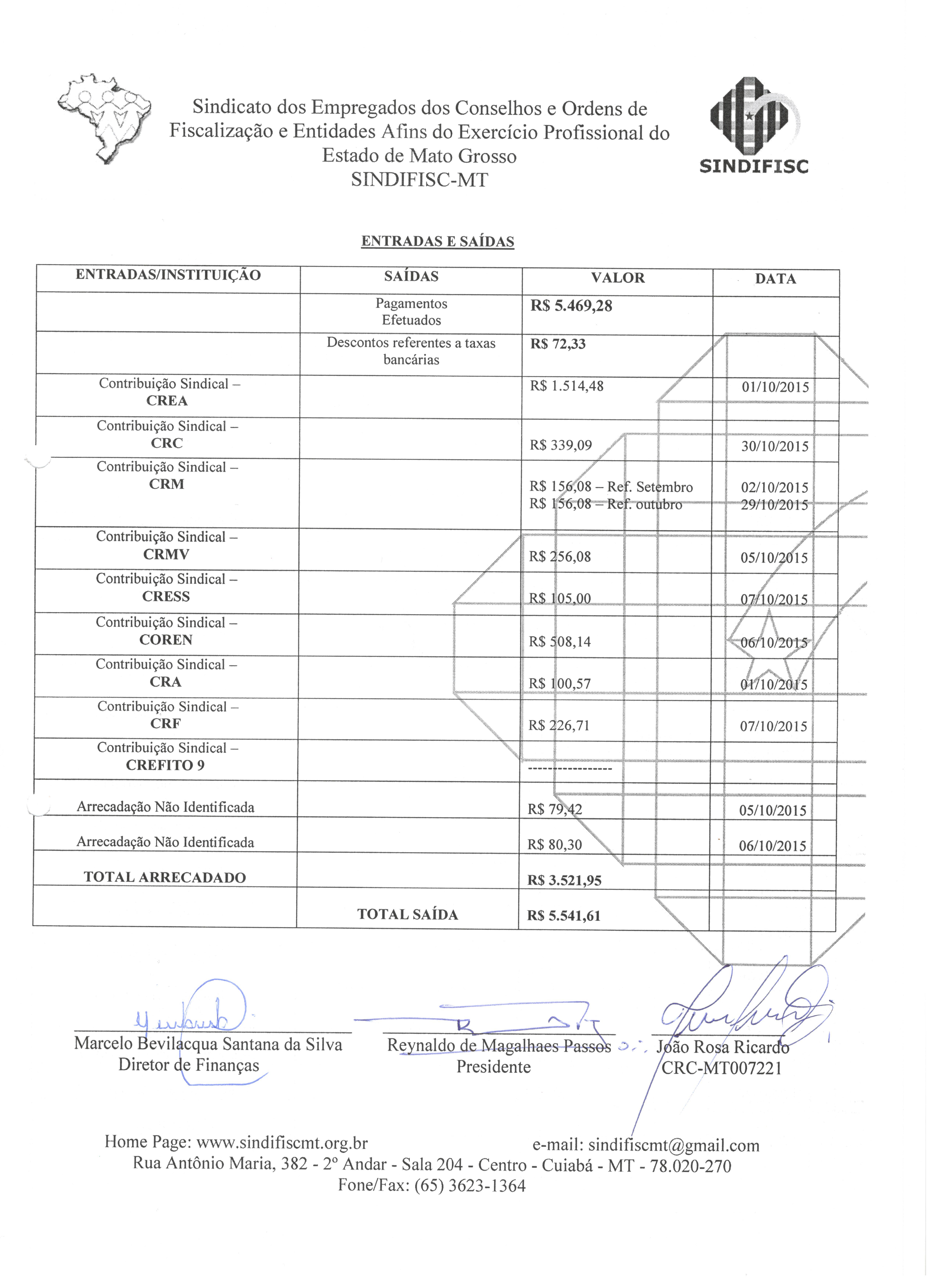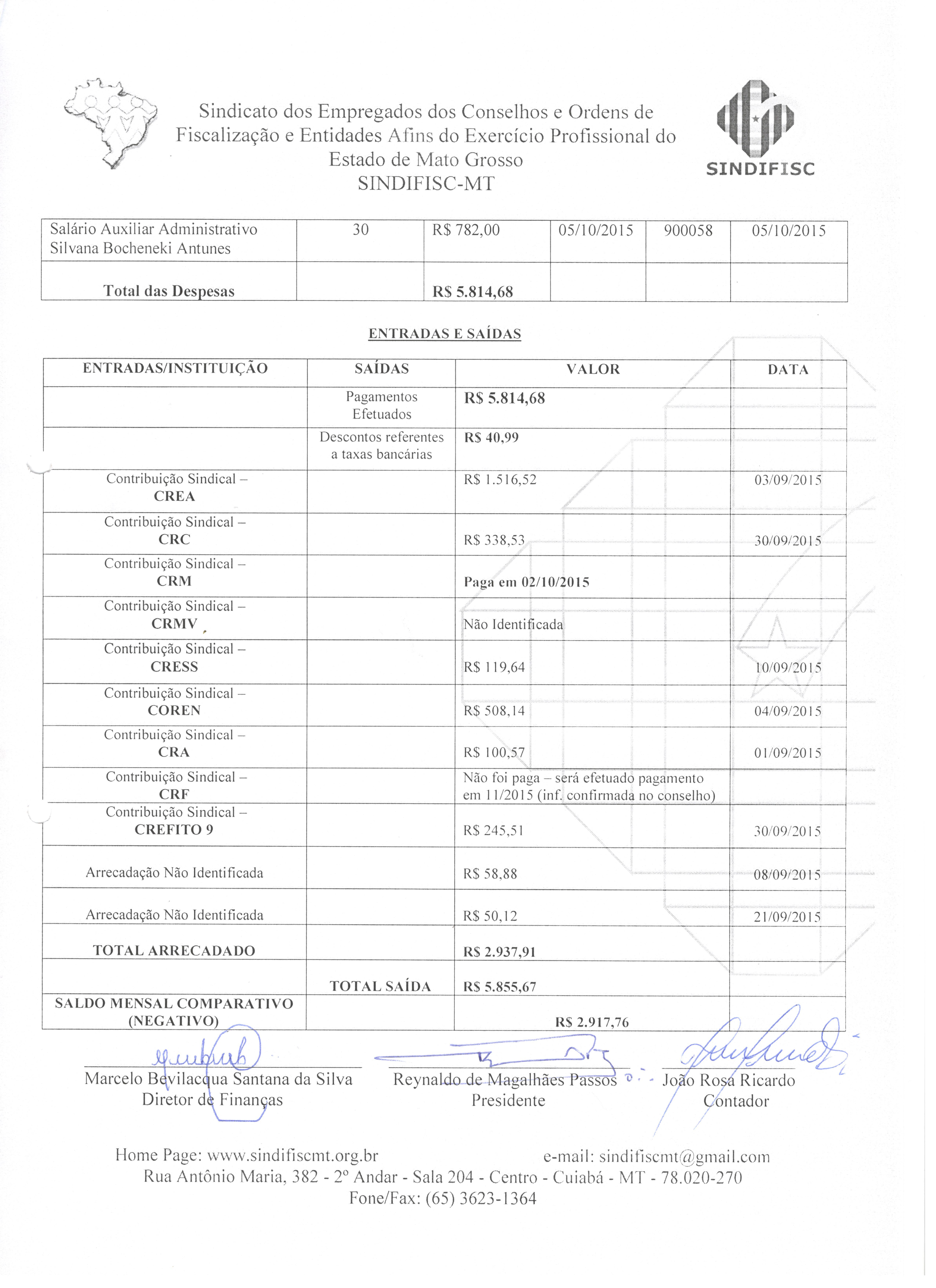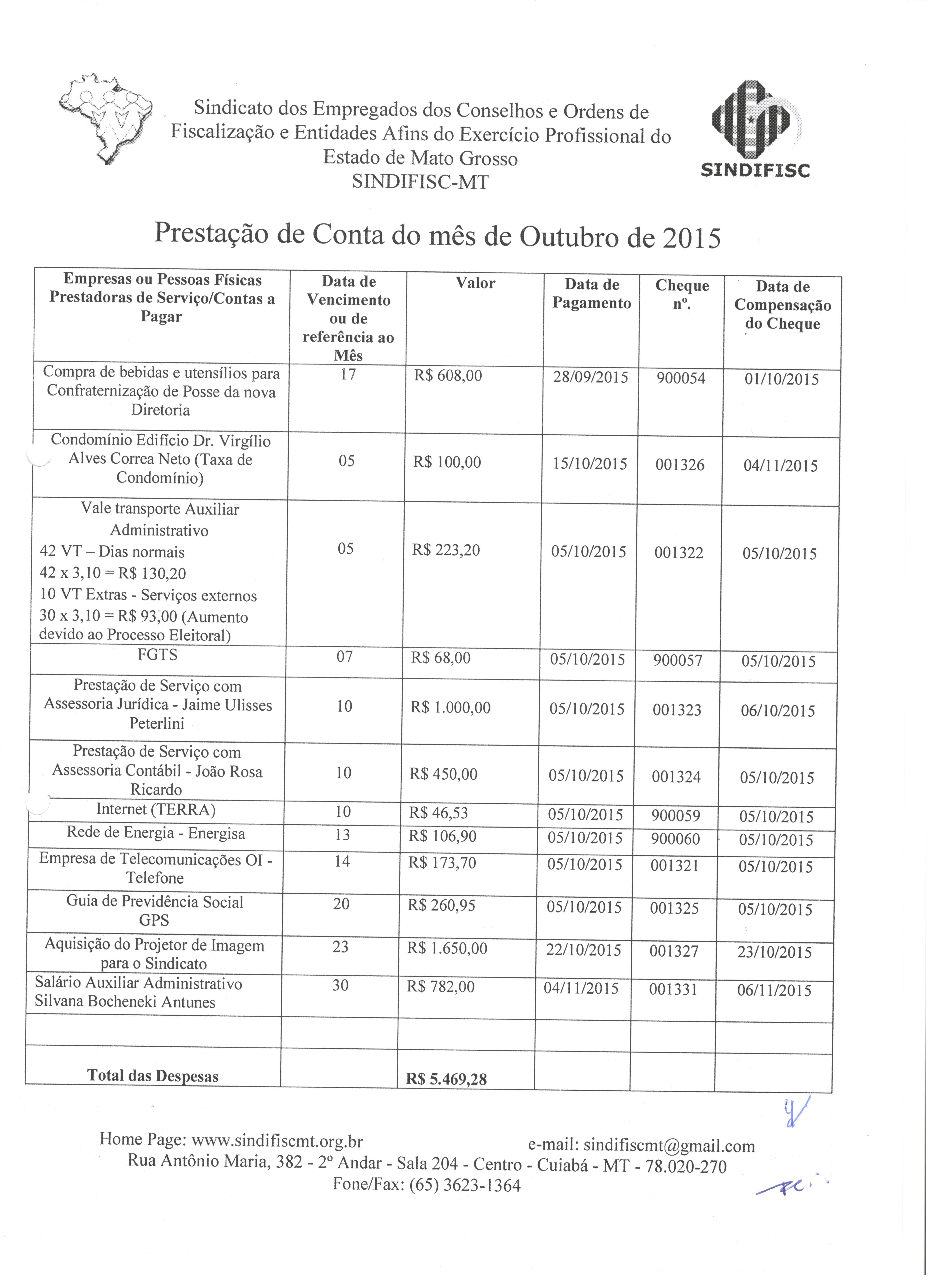 PRESTAÇÃO DE CONTAS - OUTUBRO DE 2015 - RECEITAS E DESPESAS 2/3