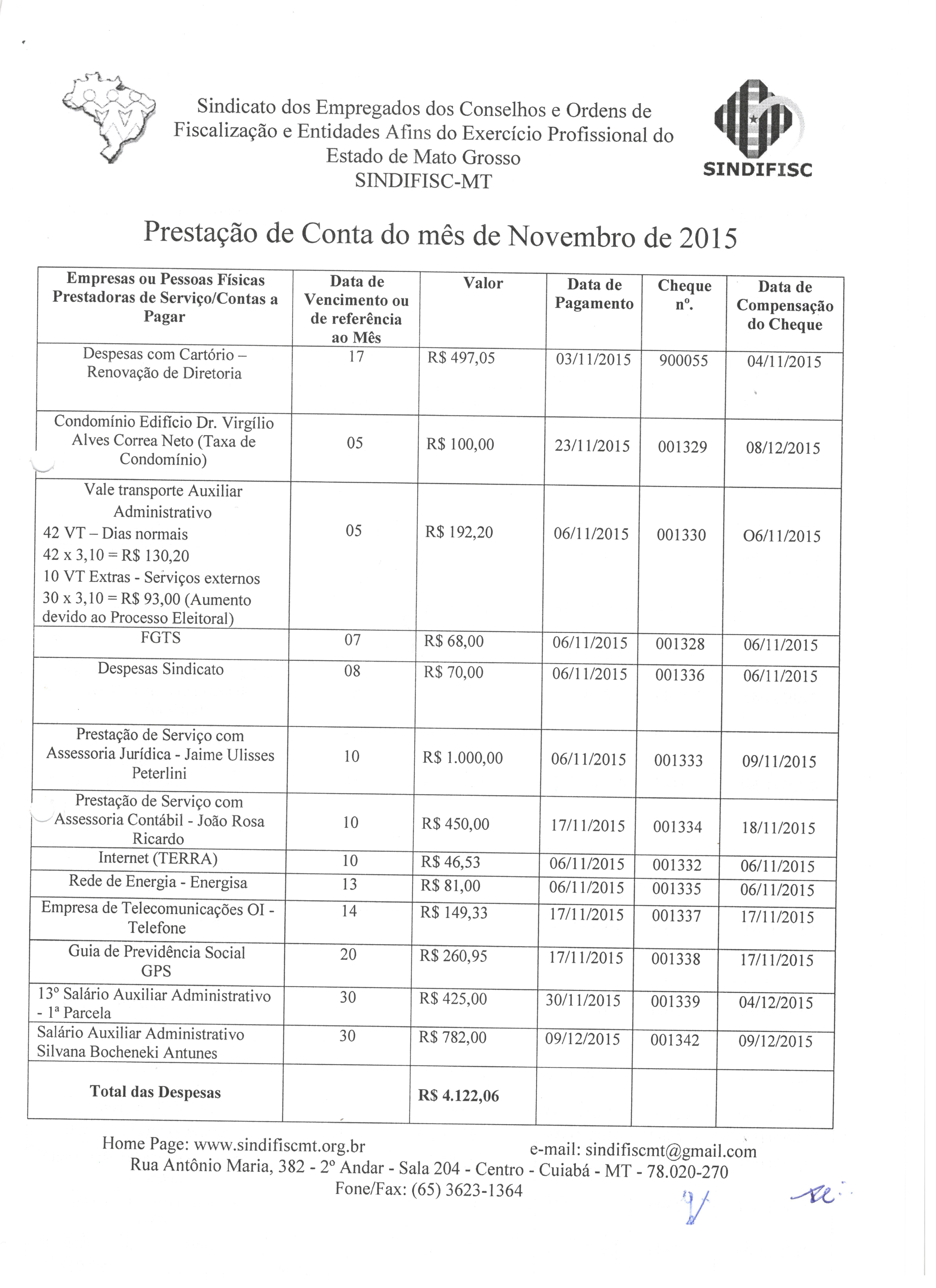 PRESTAÇÃO DE CONTAS - NOVEMBRO DE 2015 - RECEITAS E DESPESAS 1/3