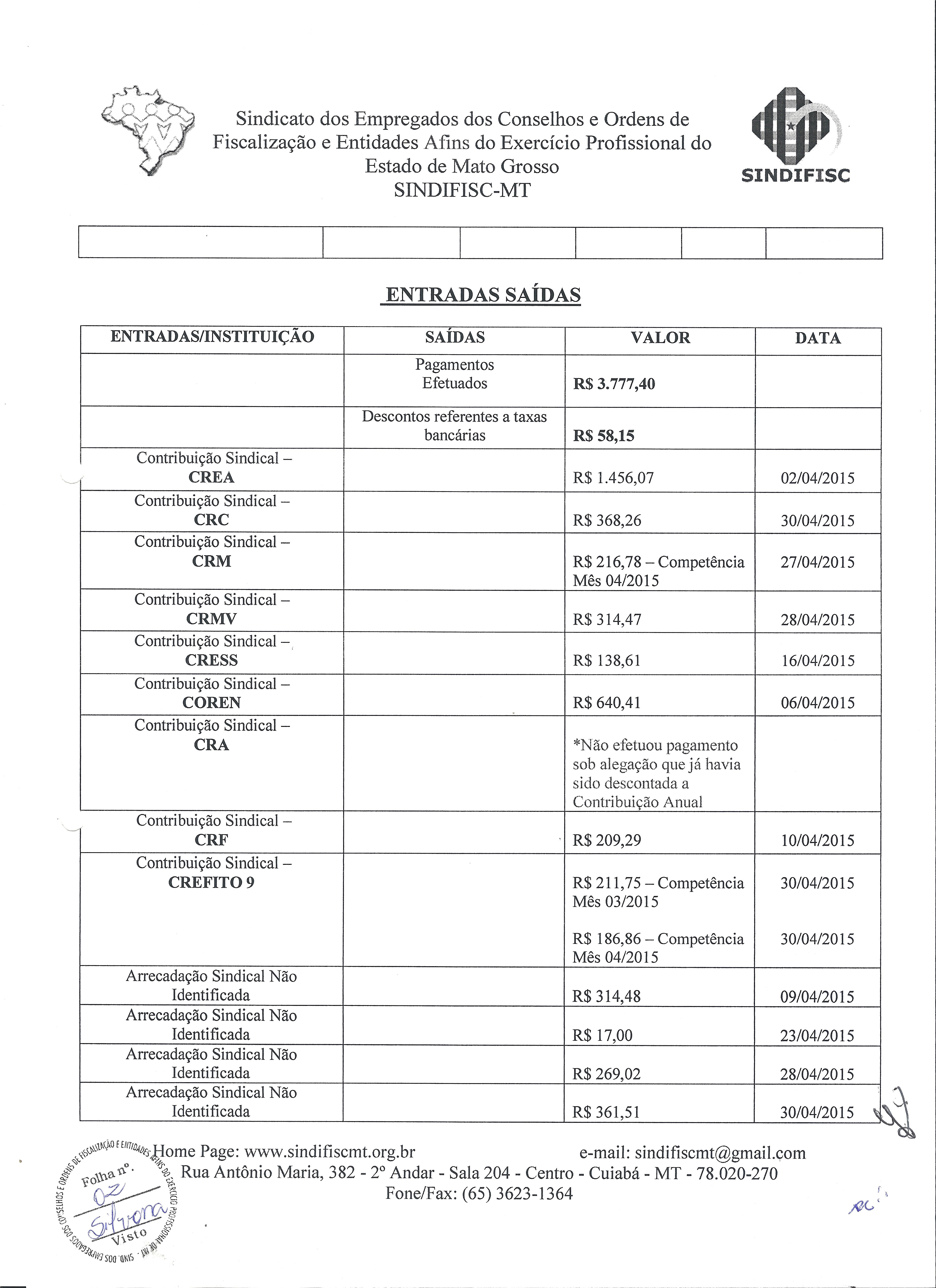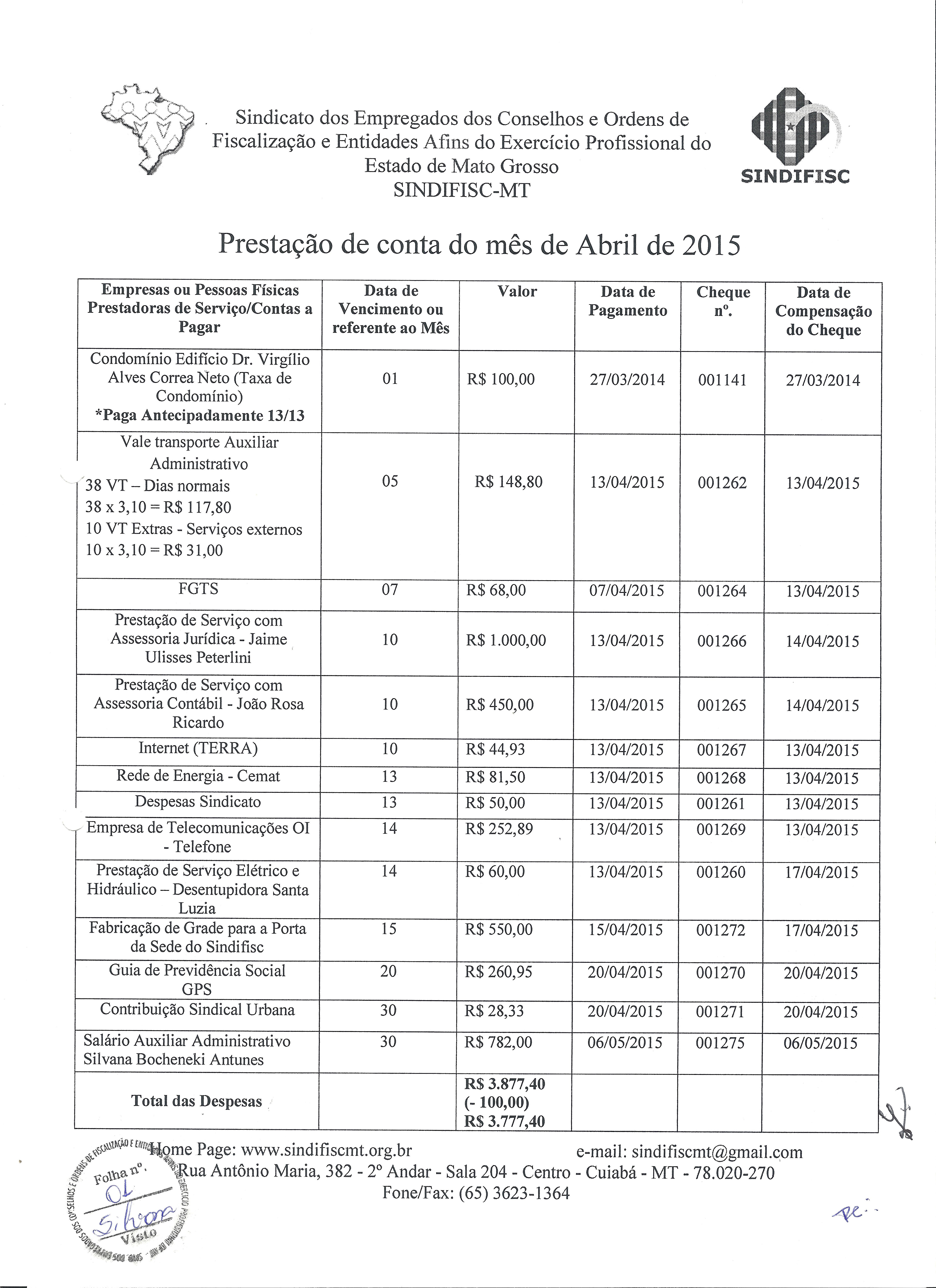 PRESTAÇÃO DE CONTAS - ABRIL DE 2015