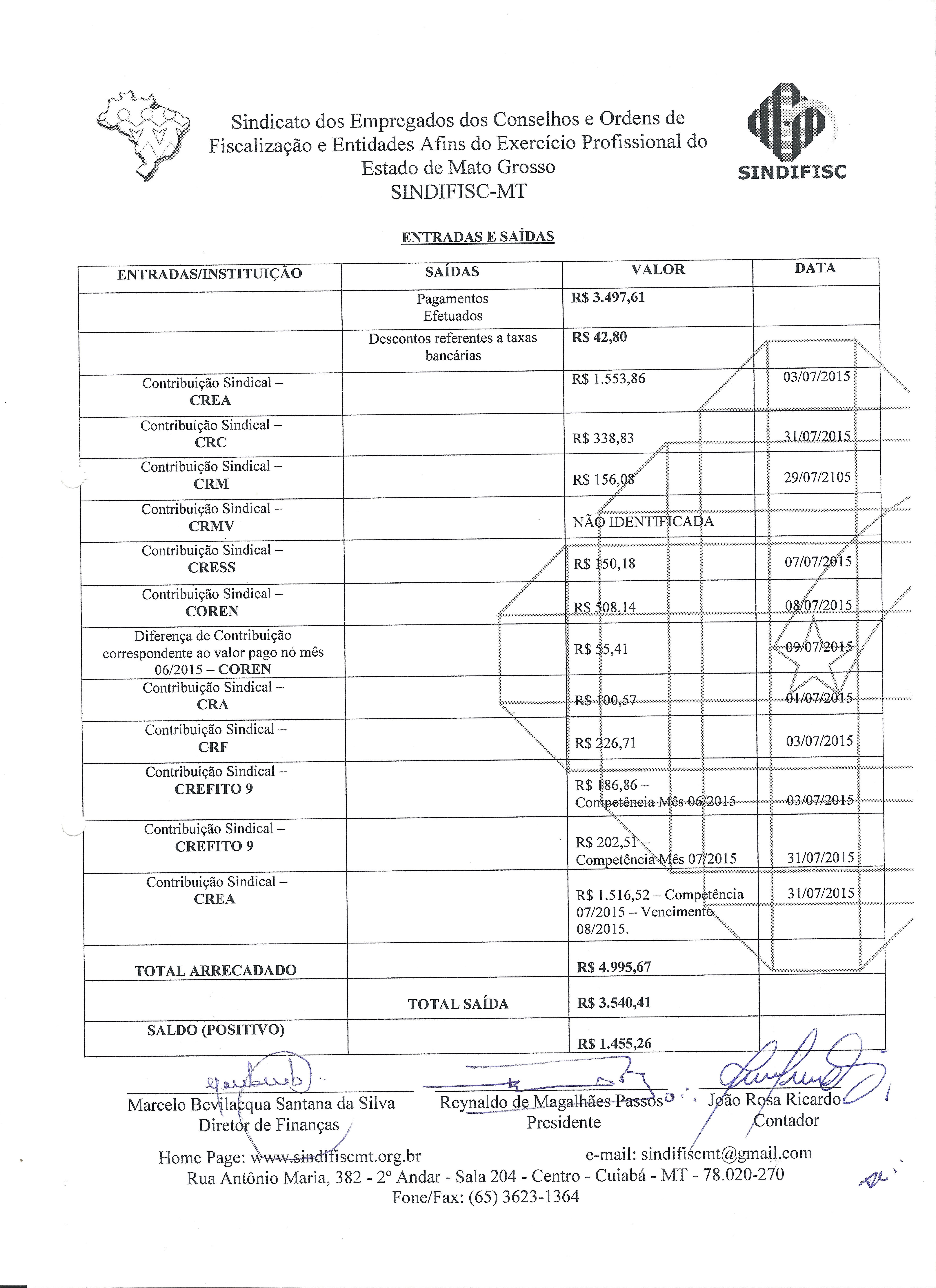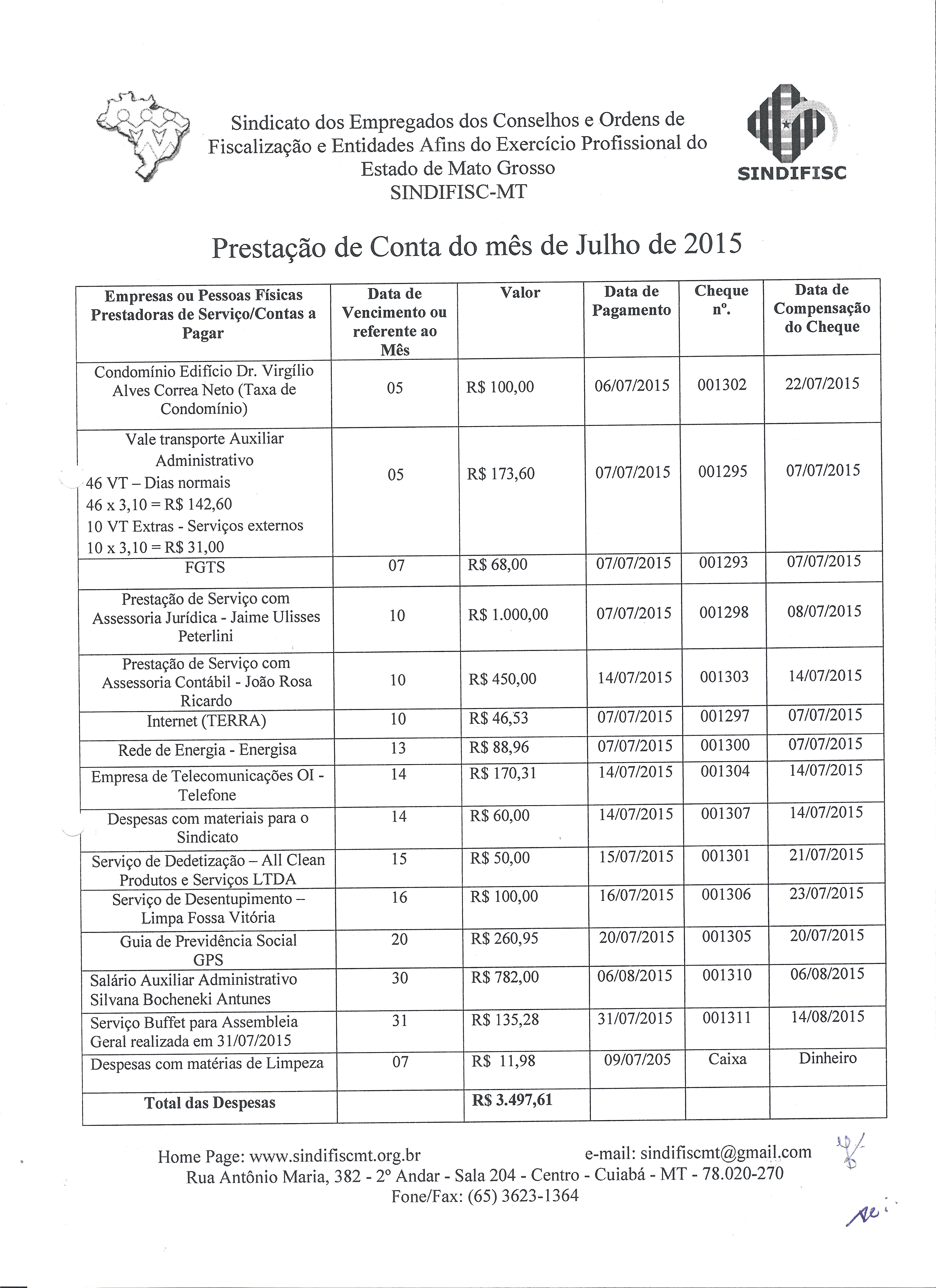 PRESTAÇÃO DE CONTAS - JULHO DE 2015