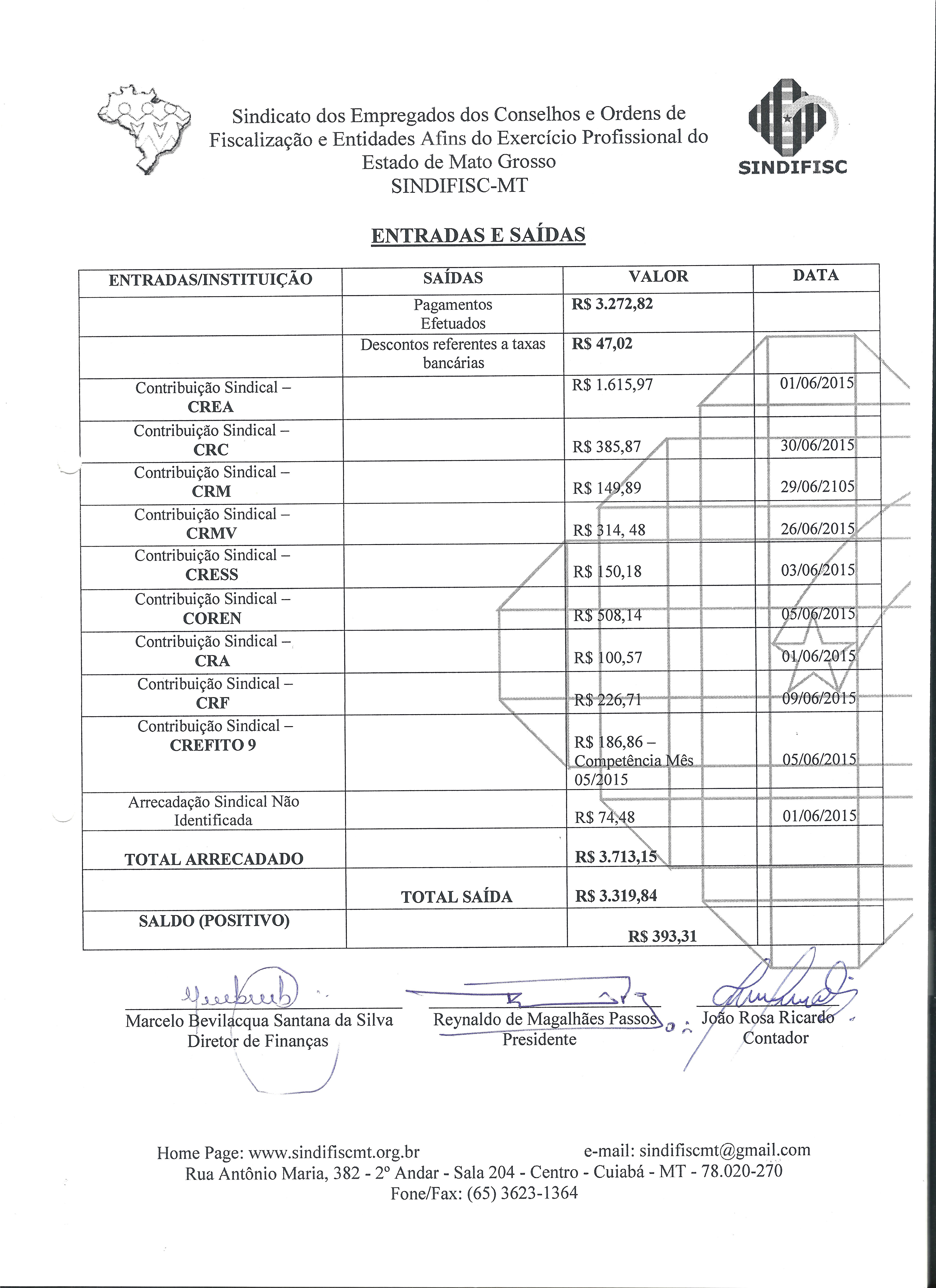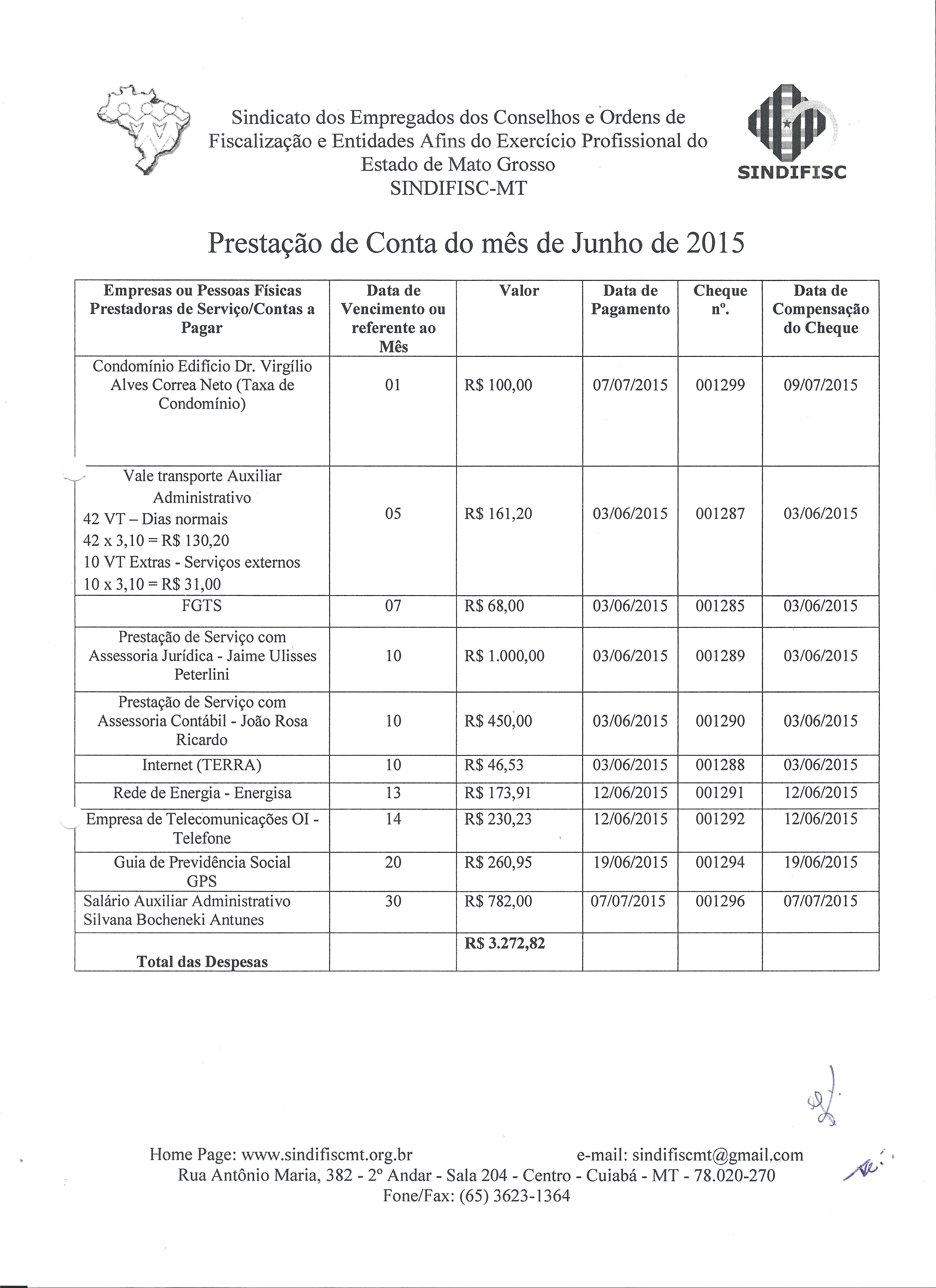 PRESTAÇÃO DE CONTAS - JUNHO DE 2015