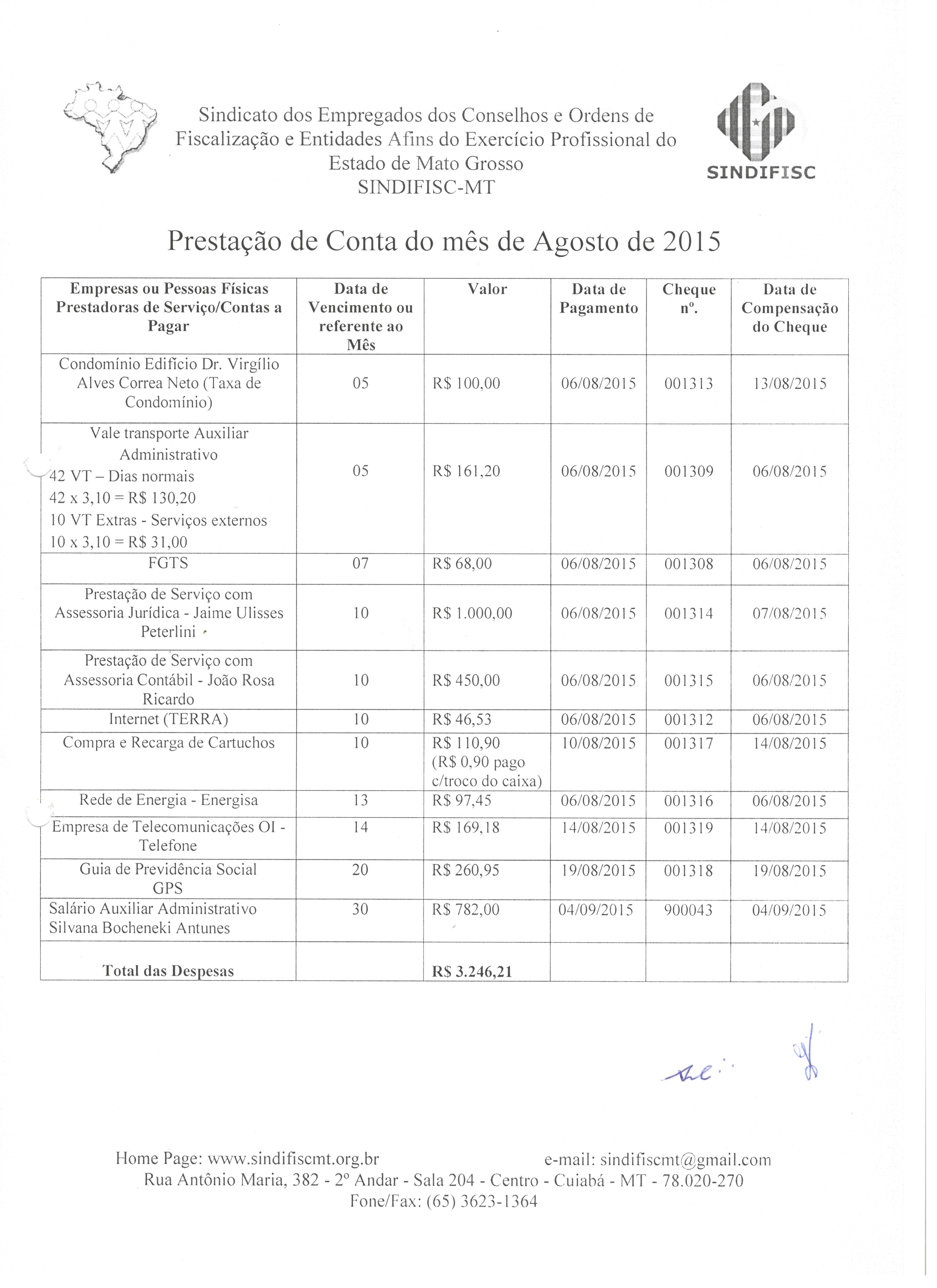 PRESTAÇÃO DE CONTAS - AGOSTO DE 2015 1/3