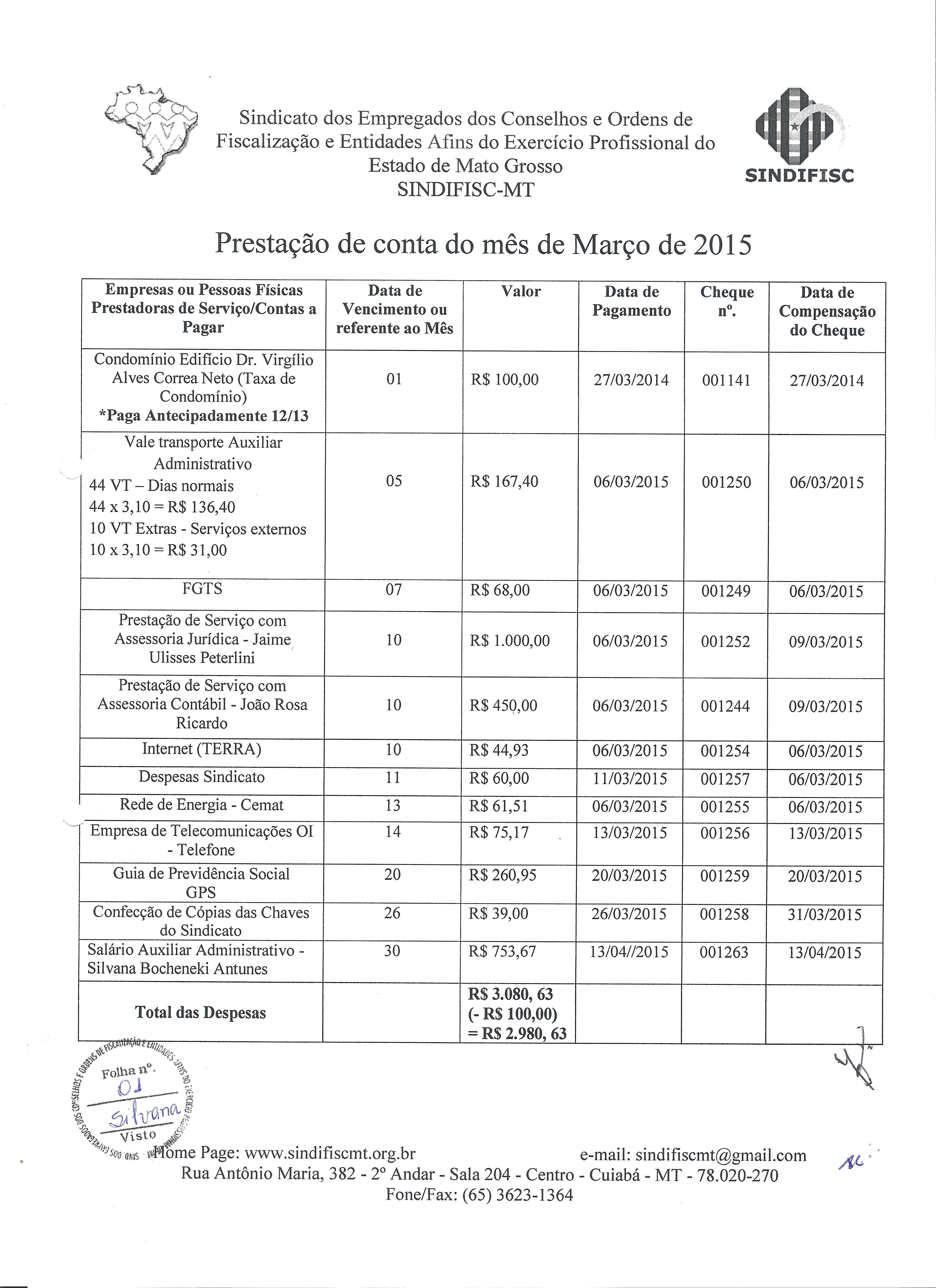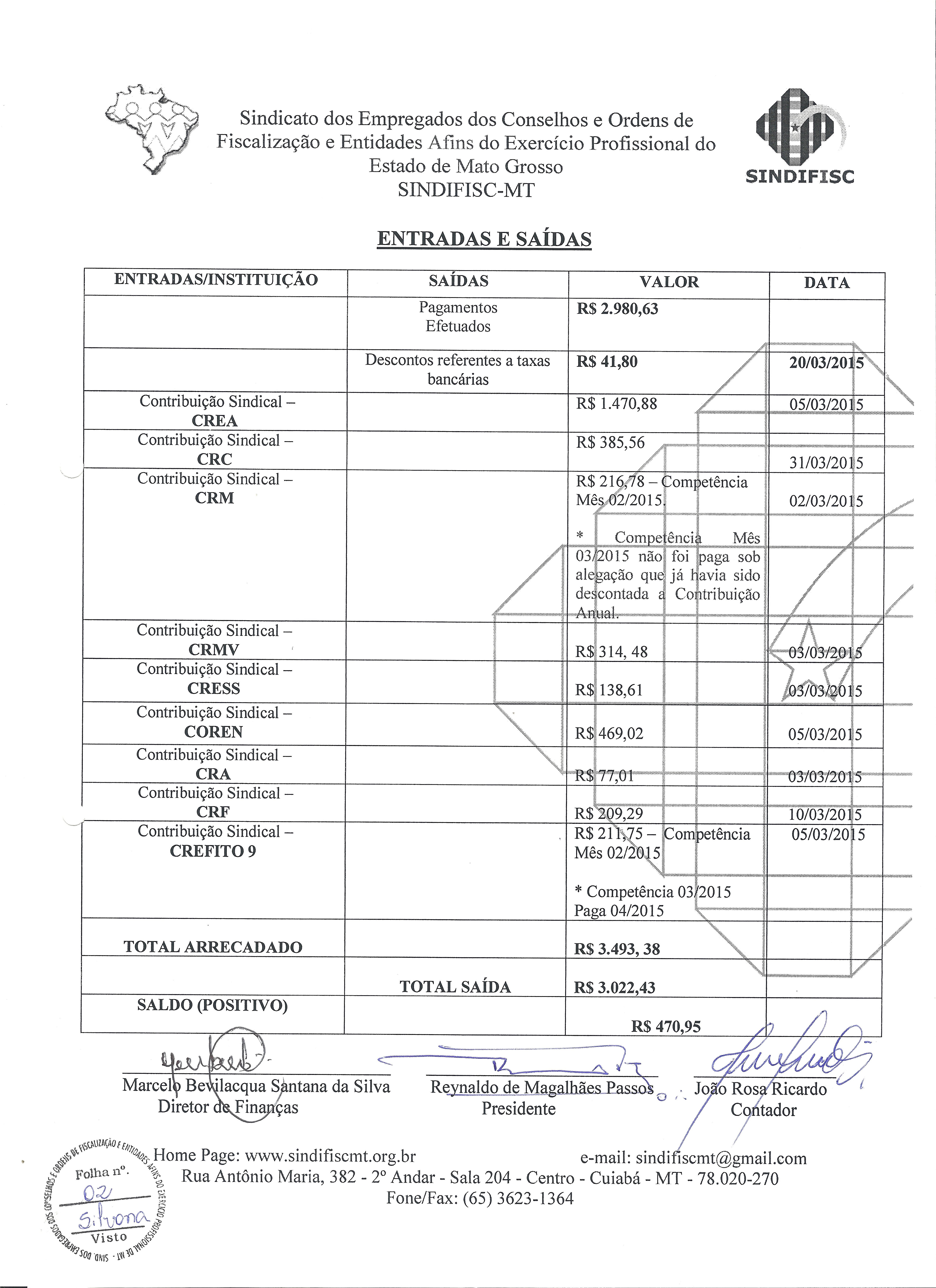 PRESTAÇÃO DE CONTAS - MARÇO DE 2015