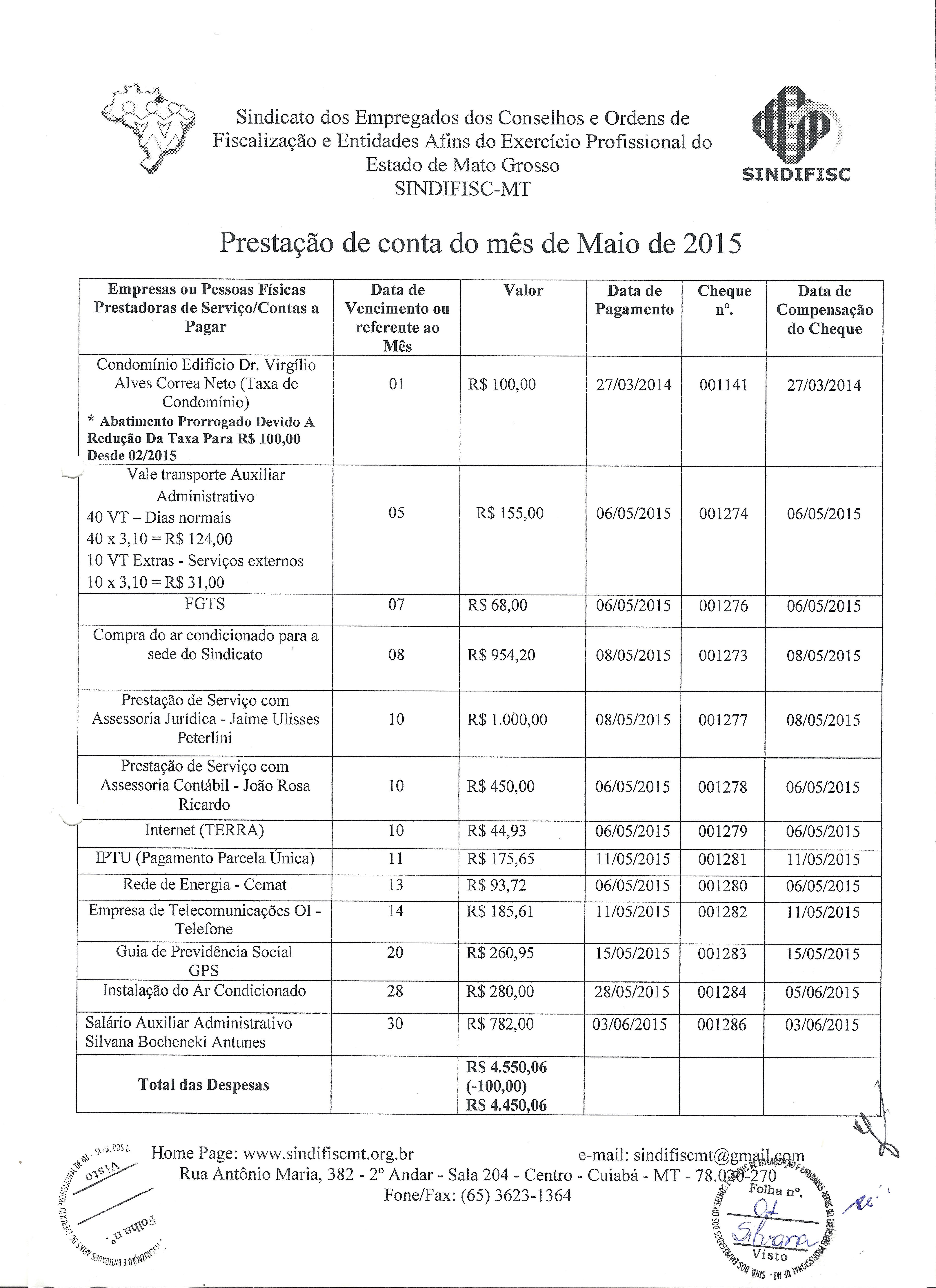 PRESTAÇÃO DE CONTAS - MAIO DE 2015