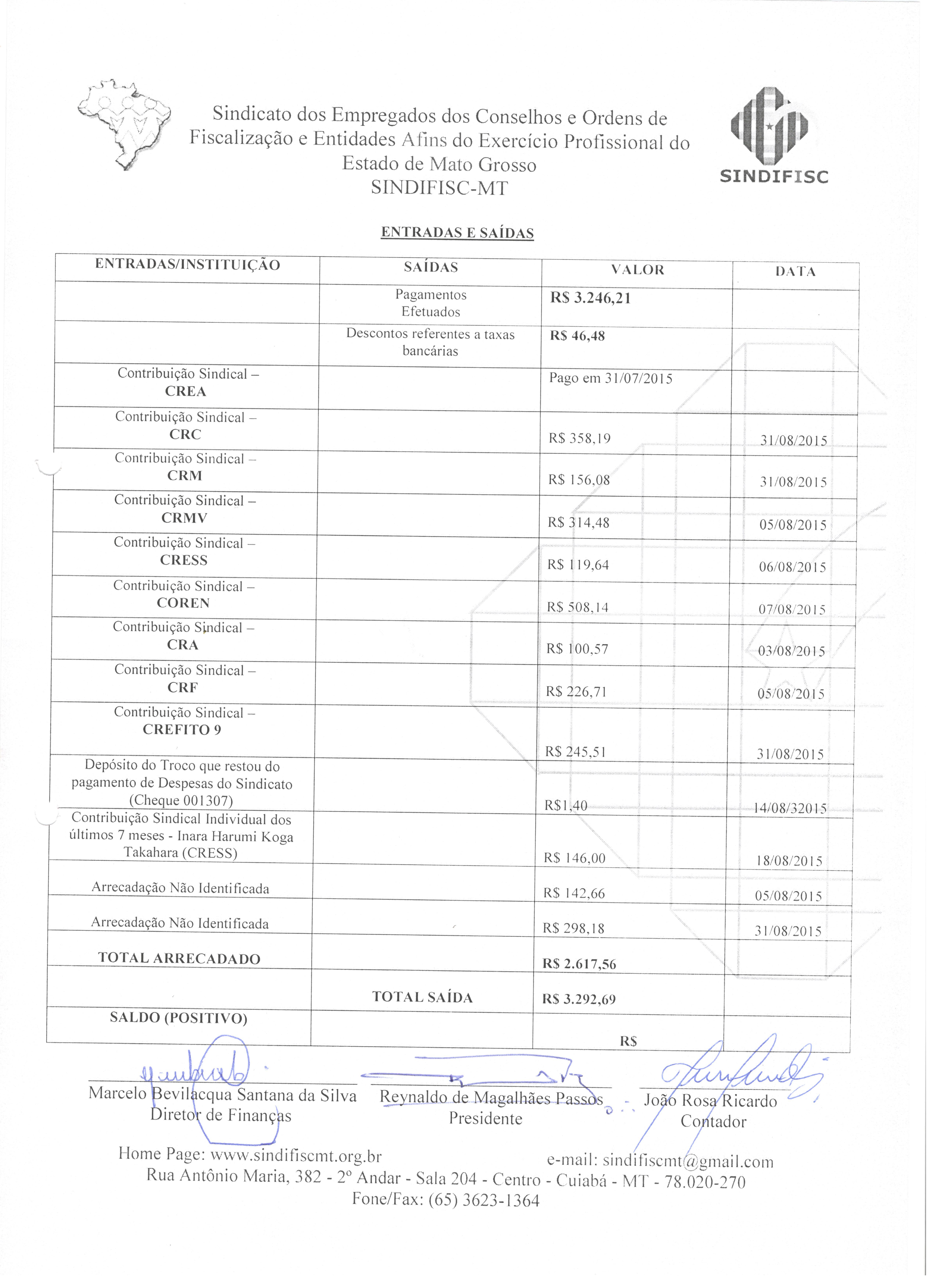 PRESTAÇÃO DE CONTAS - AGOSTO DE 2015 - RECEITAS E DESPESAS 2/3