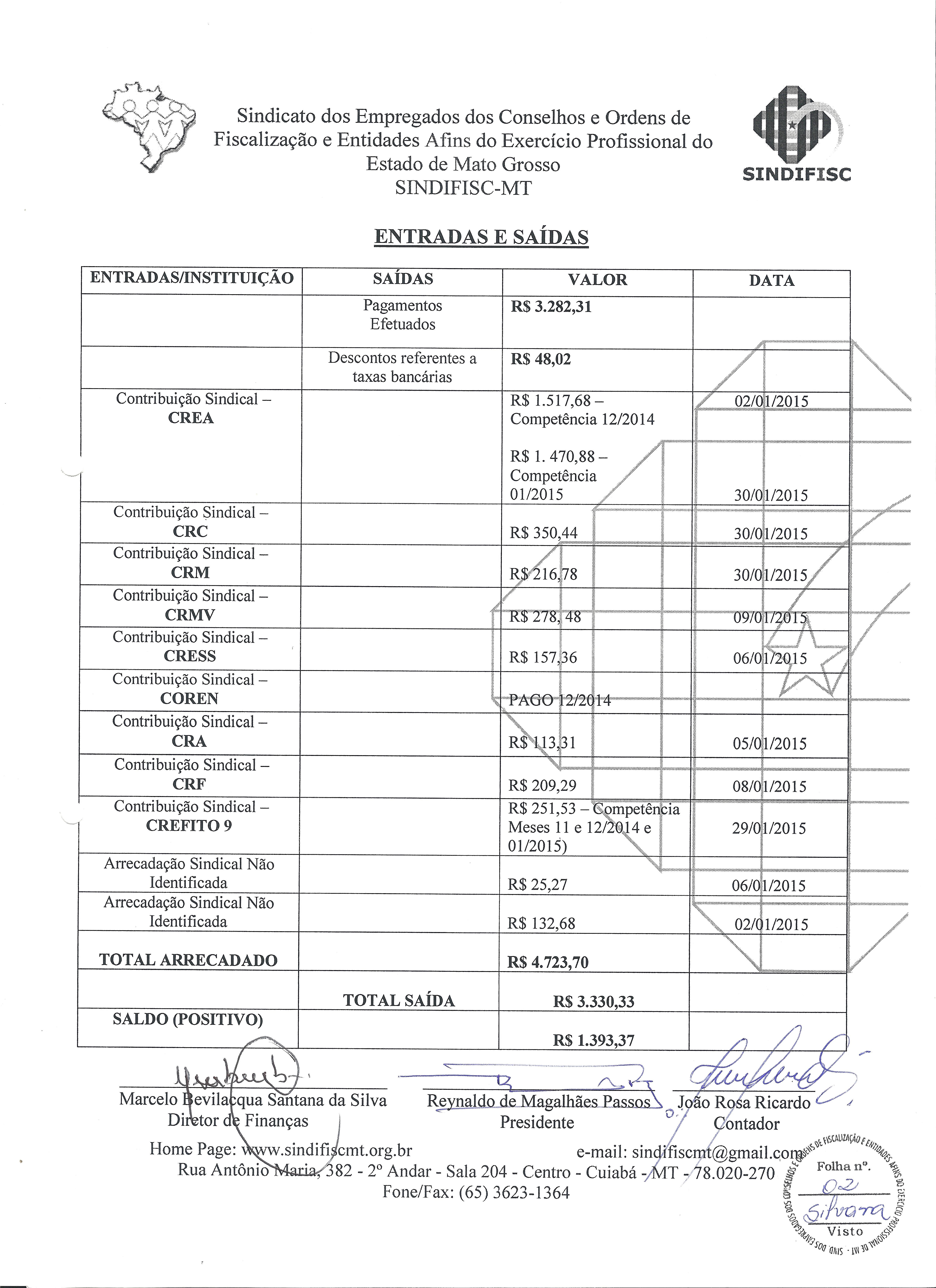 PRESTAÇÃO DE CONTAS - JANEIRO DE 2015 - RECEITA E DESPESAS