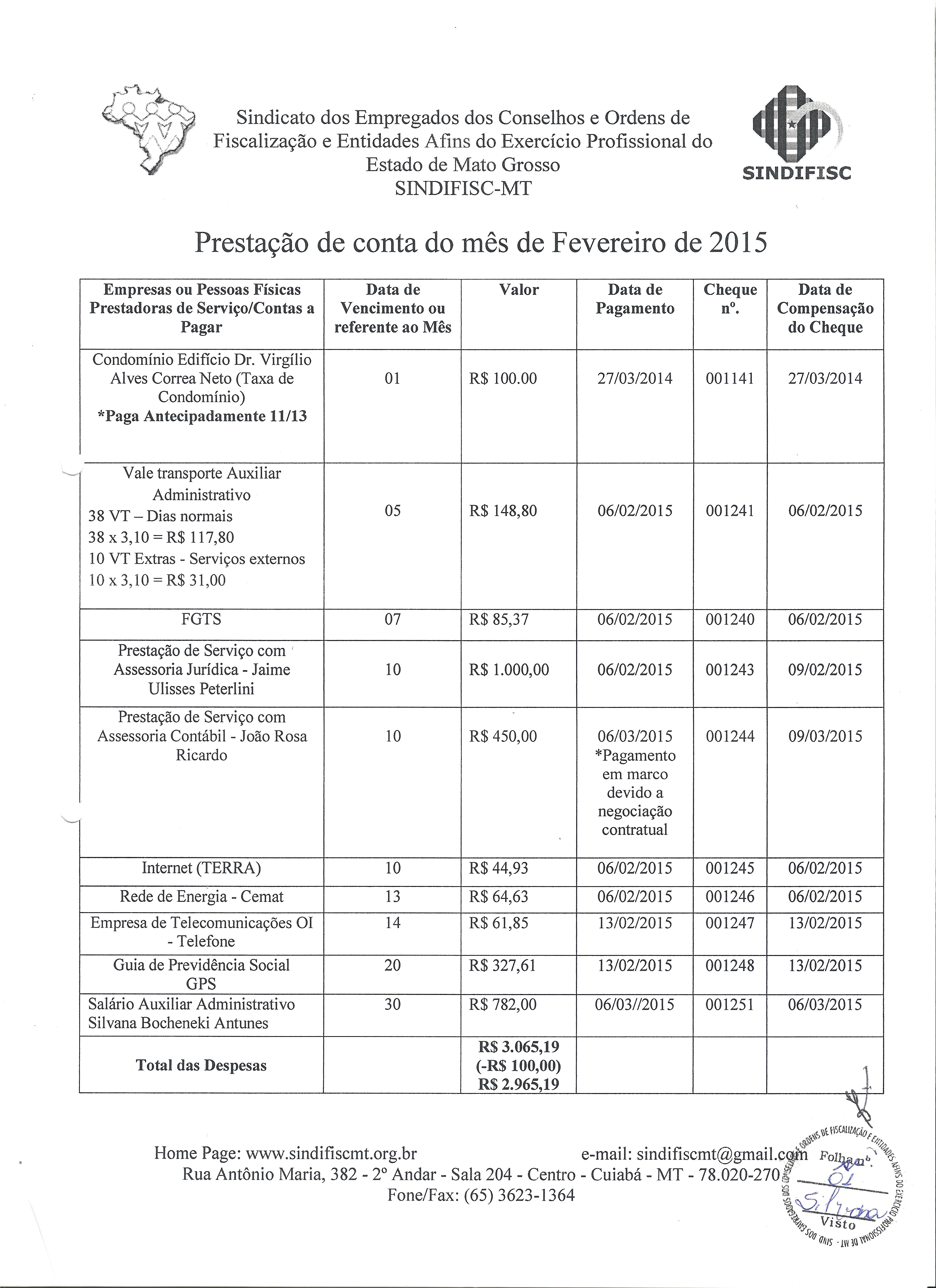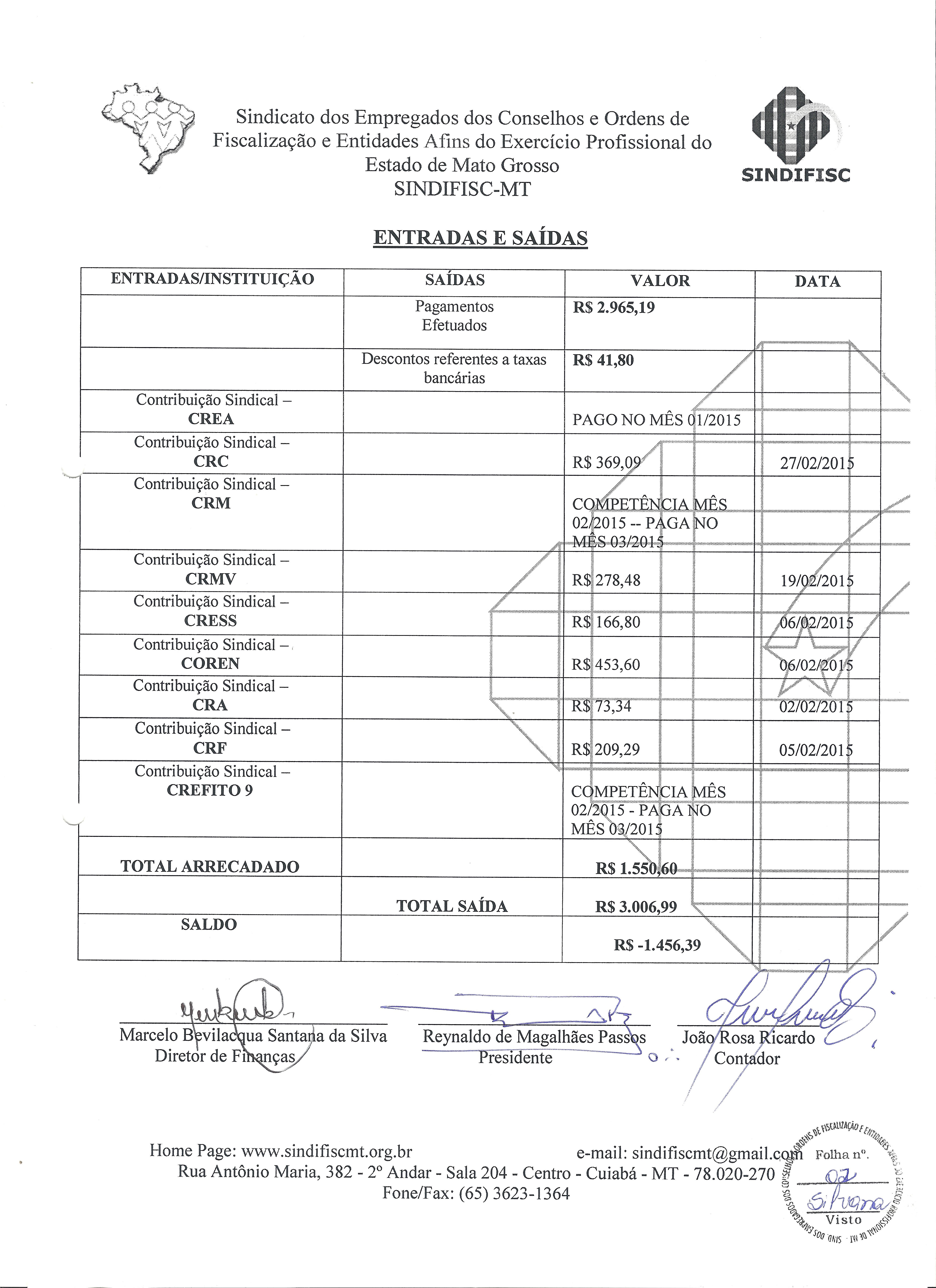 PRESTAÇÃO DE CONTAS - FEVEREIRO DE 2015