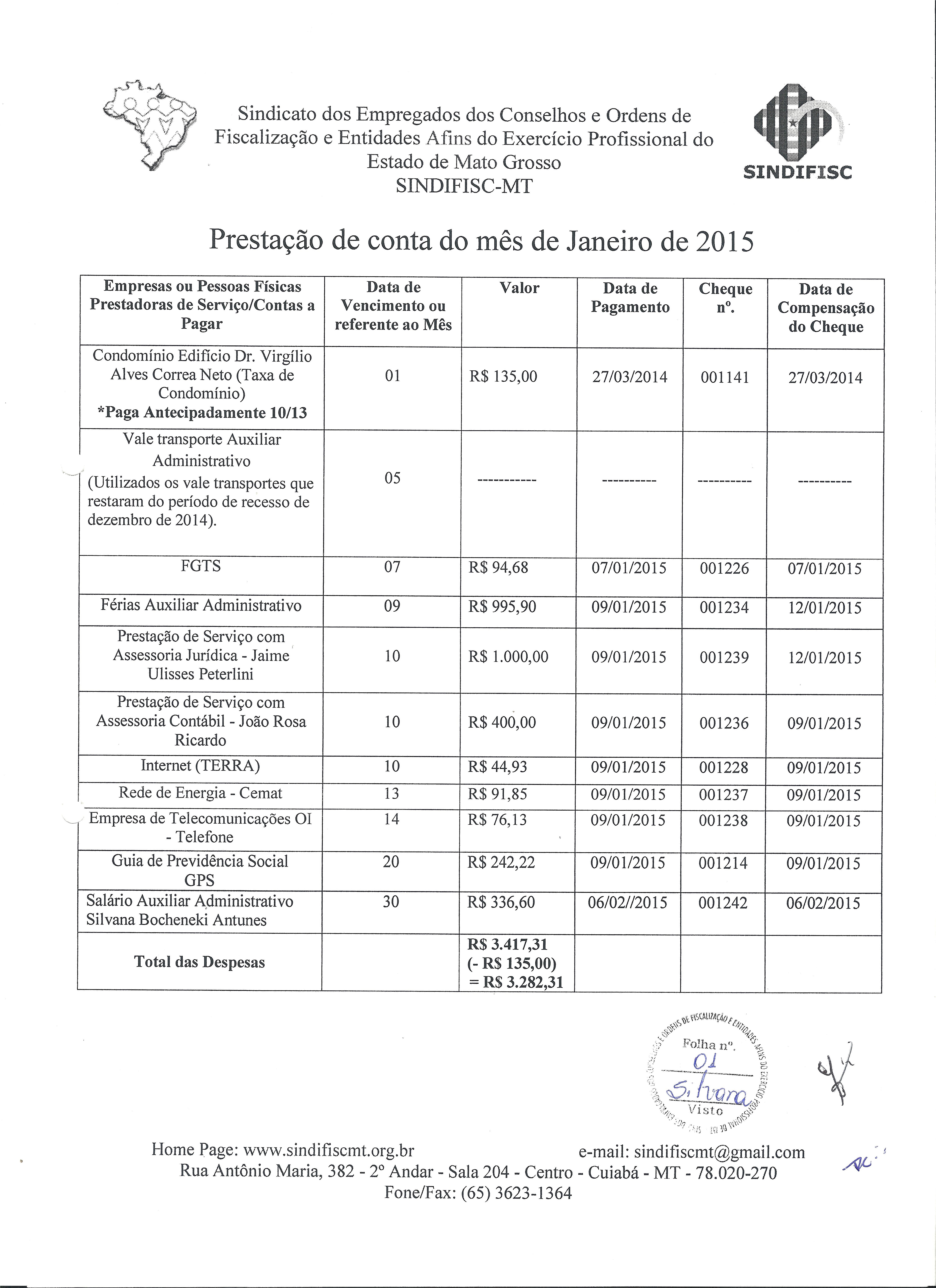 PRESTAÇÃO DE CONTAS - JANEIRO DE 2015